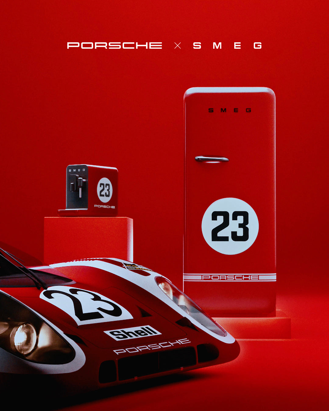 917 Salzburg Red je verovatno najhrabrija stvar koju su oba brenda izbacila godinama. Crvena je direktno preuzeta sa Porsche 917 KH (1970); bele pruge i “23” su postavljeni precizno kao na pravom trkačkom liveriju. Numerisane pločice guraju ove komade u kolekcionarski teritoriju — ako uspeš da ne koristiš, već samo gledaš. Fascinantno je koliko se trkačka energija dobro prevodi u frižider ili aparat za kafu — grafika pojačava već teatralan SMEG jezik. Ovo je kuhinjska oprema koja traži centar pažnje — i zaslužuje je.